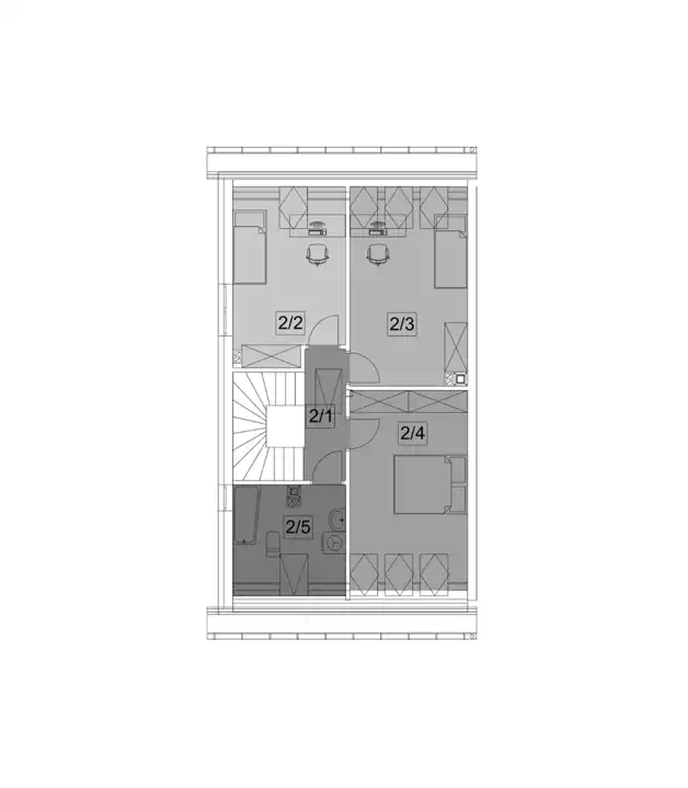 - Garaż – 18,46 m² (z możliwością adaptacji na pokój lub biuro)