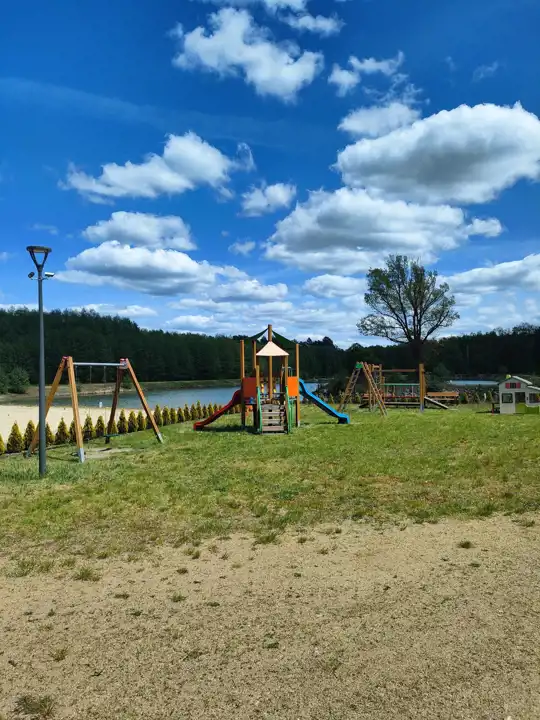 - Jezioro o powierzchni 2 ha z piaszczystą plażą i pomostami