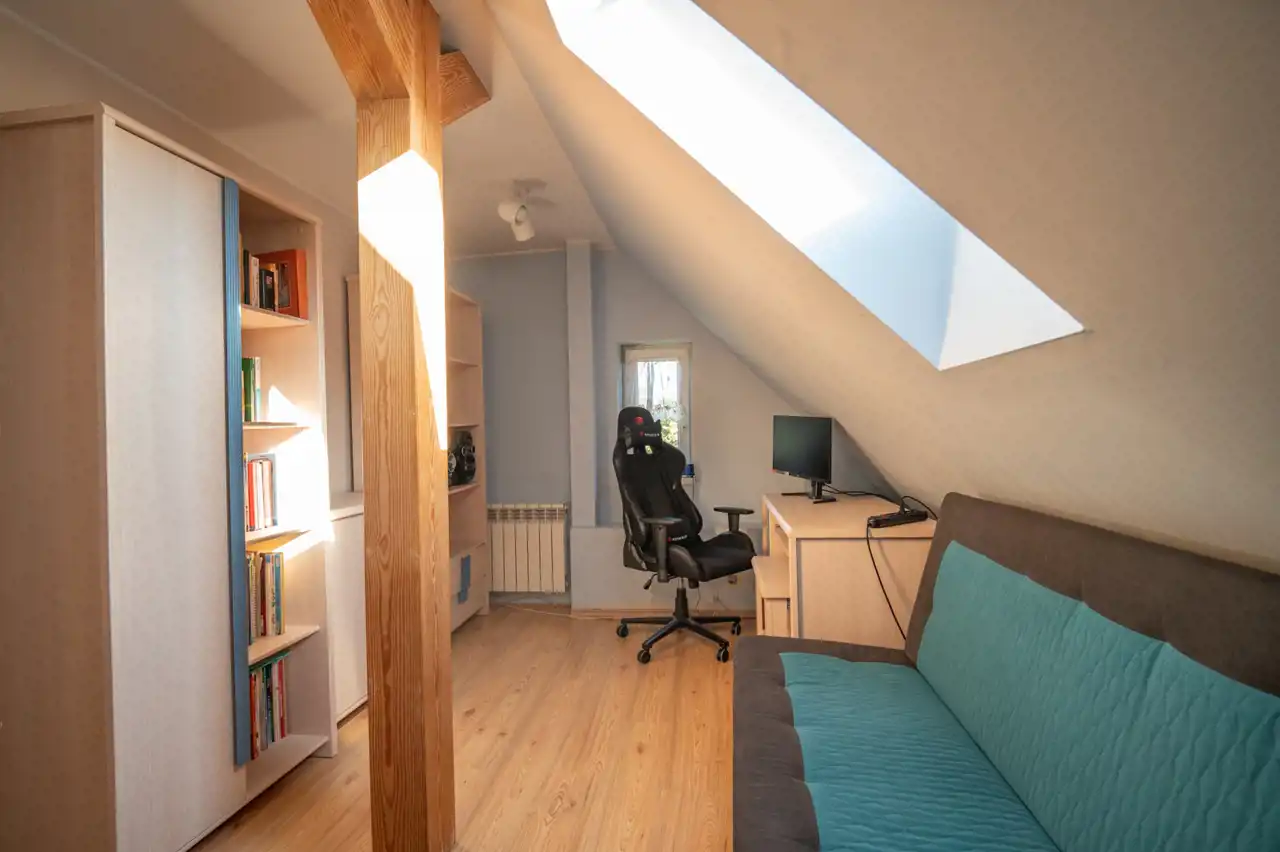 Budynek wolnostojący, parterowy z użytkowym poddaszem oraz piwnicą o powierzchni mieszkalnej 106,1 m².