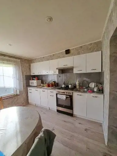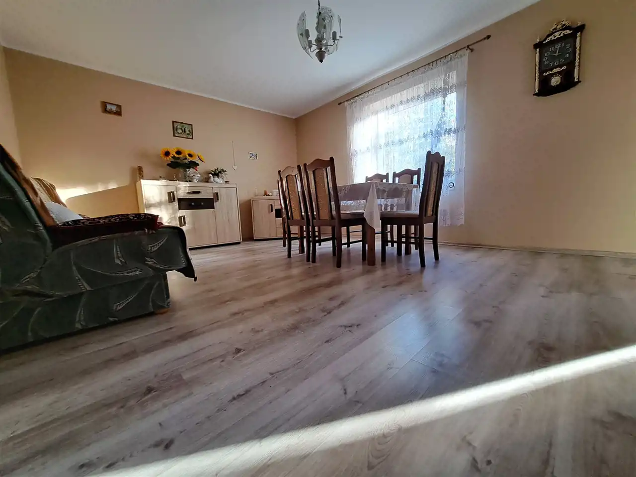 Podłogi natomiast wymienione były na panele około 4 lata temu. ¾ budynku jest dodatkowo ocieplona od środka, nie wpłynęło to jednak na znaczne pomniejszenie pomieszczeń.
