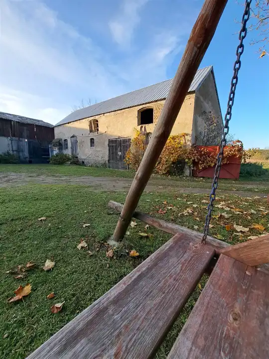 kolejne dwa natomiast są to duże budynki gospodarcze (stara chlewnia oraz stodoła, w której mieściła się stajnia) oraz murowany garaż.
