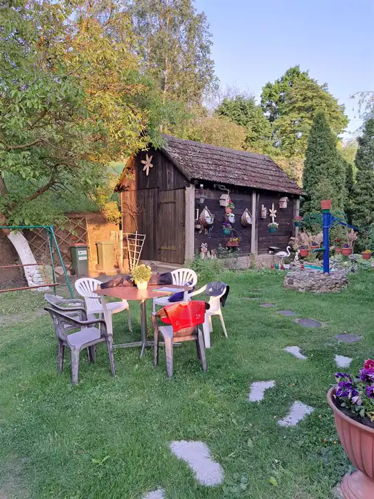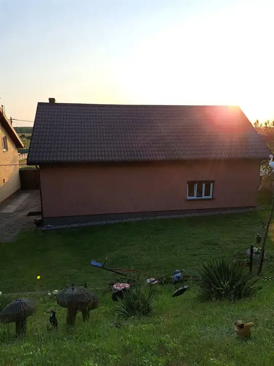 Parterowy budynek z dwustanowiskowym garażem oraz czterema dodatkowymi pomieszczeniami gospodarczymi. Istnieje potencjał adaptacji części budynku na cele mieszkalne.
