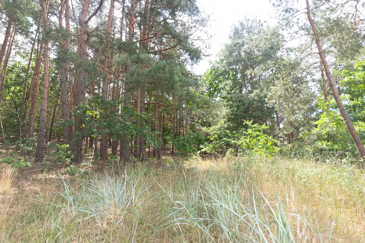 Działka o kształcie nieregularnym, częściowo porośnięta lasem. Teren działki w części zalesionej pagórkowaty.
