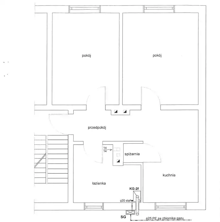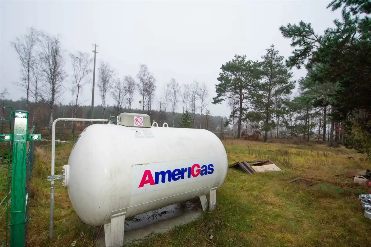 Media: woda z sieci, gaz ze zbiornika naziemnego, szambo zamknięte.