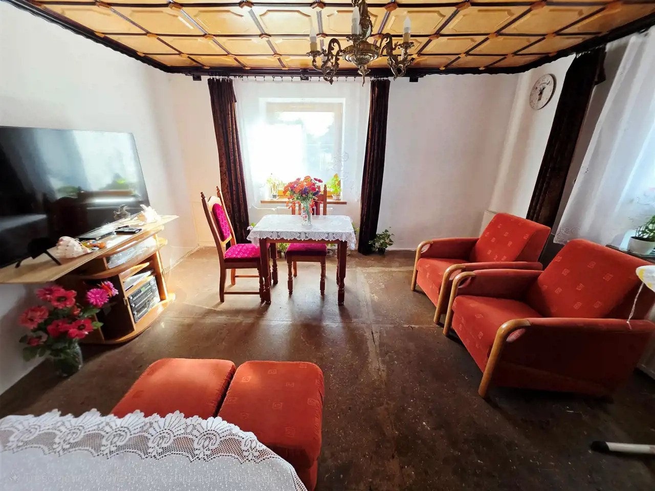 Nieruchomość położona w spokojnej zielonej okolicy. Ogrzewanie centralne, kocioł węglowy.
