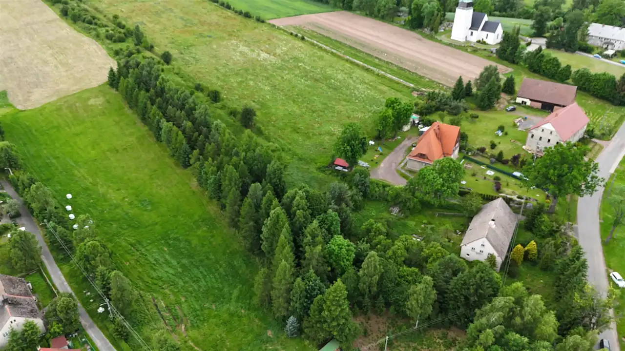- Działka Niezagospodarowana, częściowo zalesiona, nieregularny