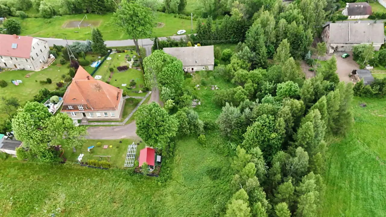 Dom usytuowany na działce o powierzchni 2028 m2, powierzchnia domu około 250 m2 wraz z zabudowaniami gospodarczymi