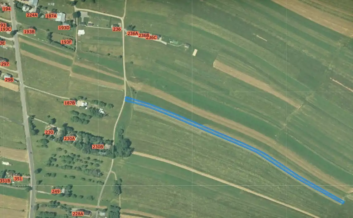 Działka o numerze ewidencyjnym 914/4, obręb Koniówka, wyróżnia się bezpośrednim dostępem do utwardzonej drogi publicznej, co gwarantuje łatwy dojazd. Jej długie i wąskie wymiary (510 m długości i średnia szerokość 6,5 m) sprawiają, że jest to unikatowy teren z potencjałem na rozwój liniowy, idealny np. pod ścieżki dydaktyczne czy punkty widokowe.