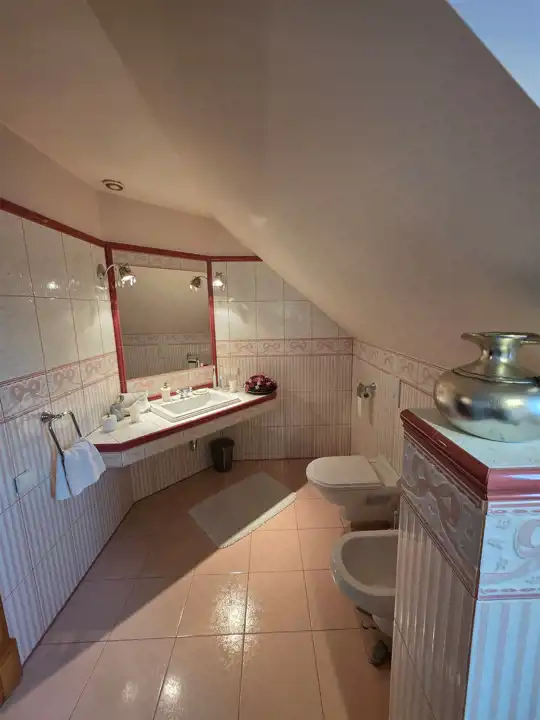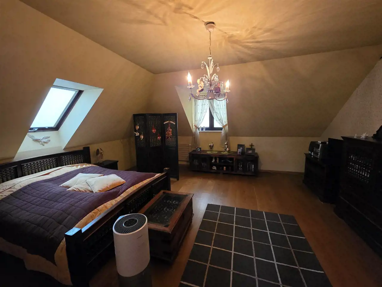 - Piętro: trzy komfortowe sypialnie, duża łazienka z wanną , przedpokój, garderoba, łazienka z prysznicem oraz toaletą.