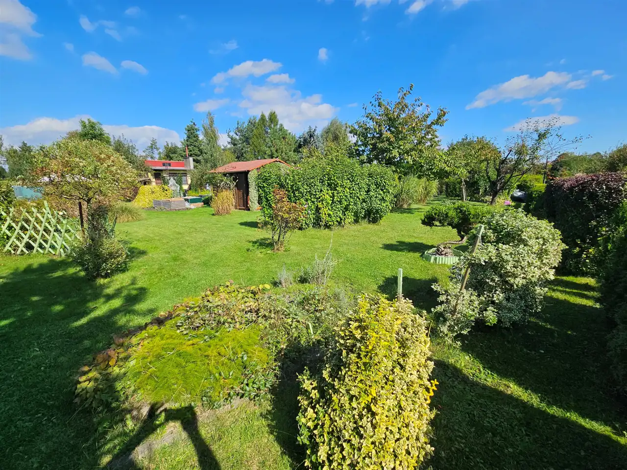Działka płaska wielkości 525m2 w pełni zagospodarowana.