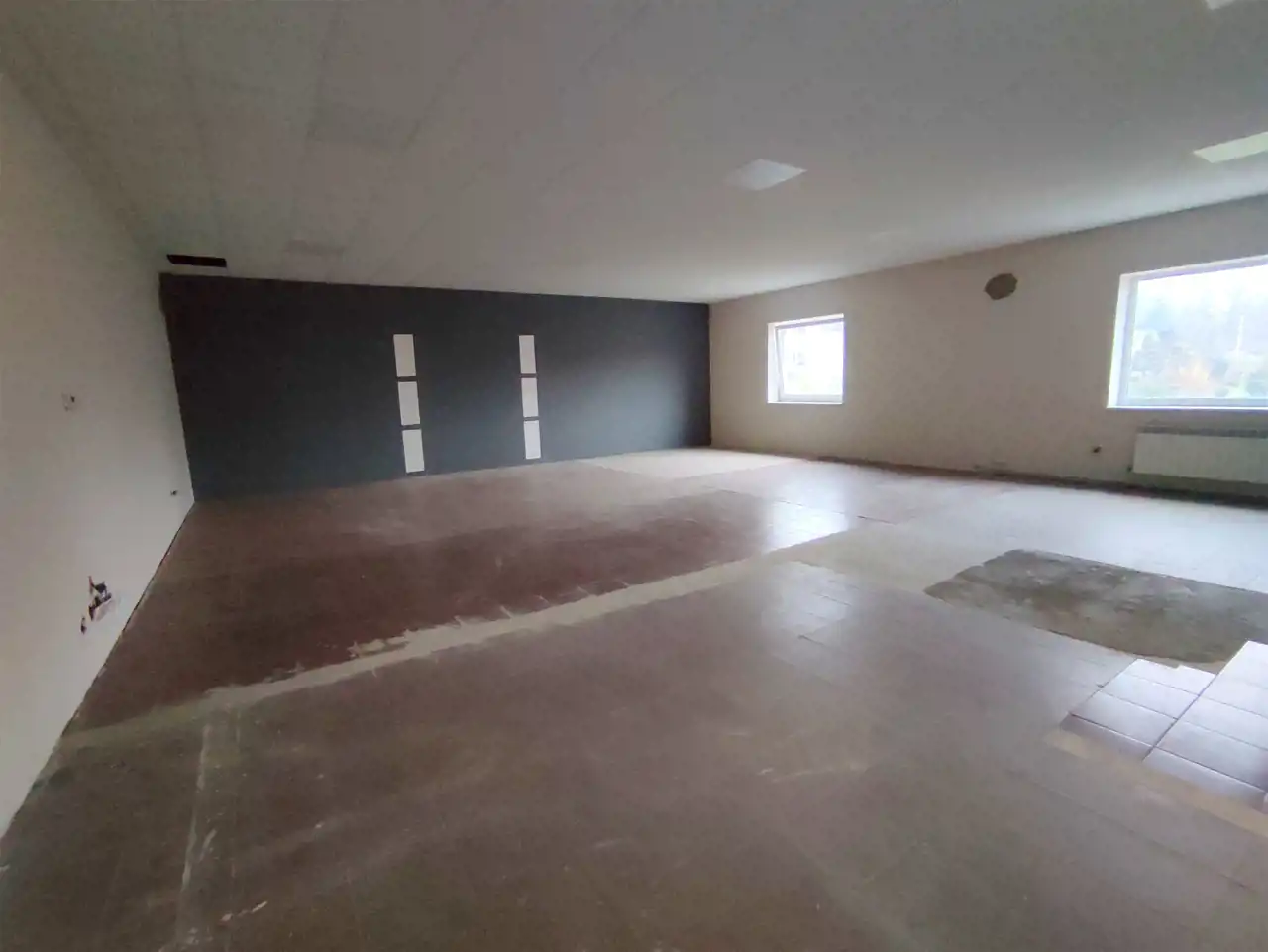 * Piętro o powierzchni 150 m² i wysokości pomieszczeń ok. 3,15 m, znajduje sie tu duża przestrzeń która może posłużyć jako sala sprzedażowa lub przestrzeń biurowa, oraz część socjalna z sanitariatami.