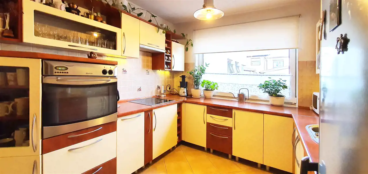 Nowoczesna kuchnia z pełnym wyposażeniem, gwarantująca wygodę gotowania,
