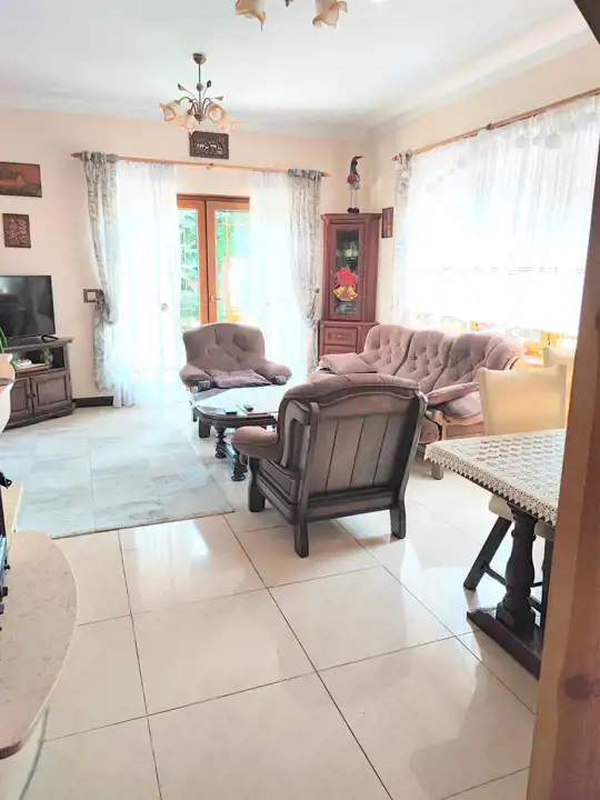 Wyjątkowy, wolnostojący dom dla osób ceniących komfort, spokój i piękno otoczenia. Nieruchomość położona jest na starannie zagospodarowanej działce 2000 m², otulonej dorodnymi tujami i kwiatami. W ogrodzie znajduje się oczko wodne – wpisane na mapy – będące stałym, urokliwym elementem.