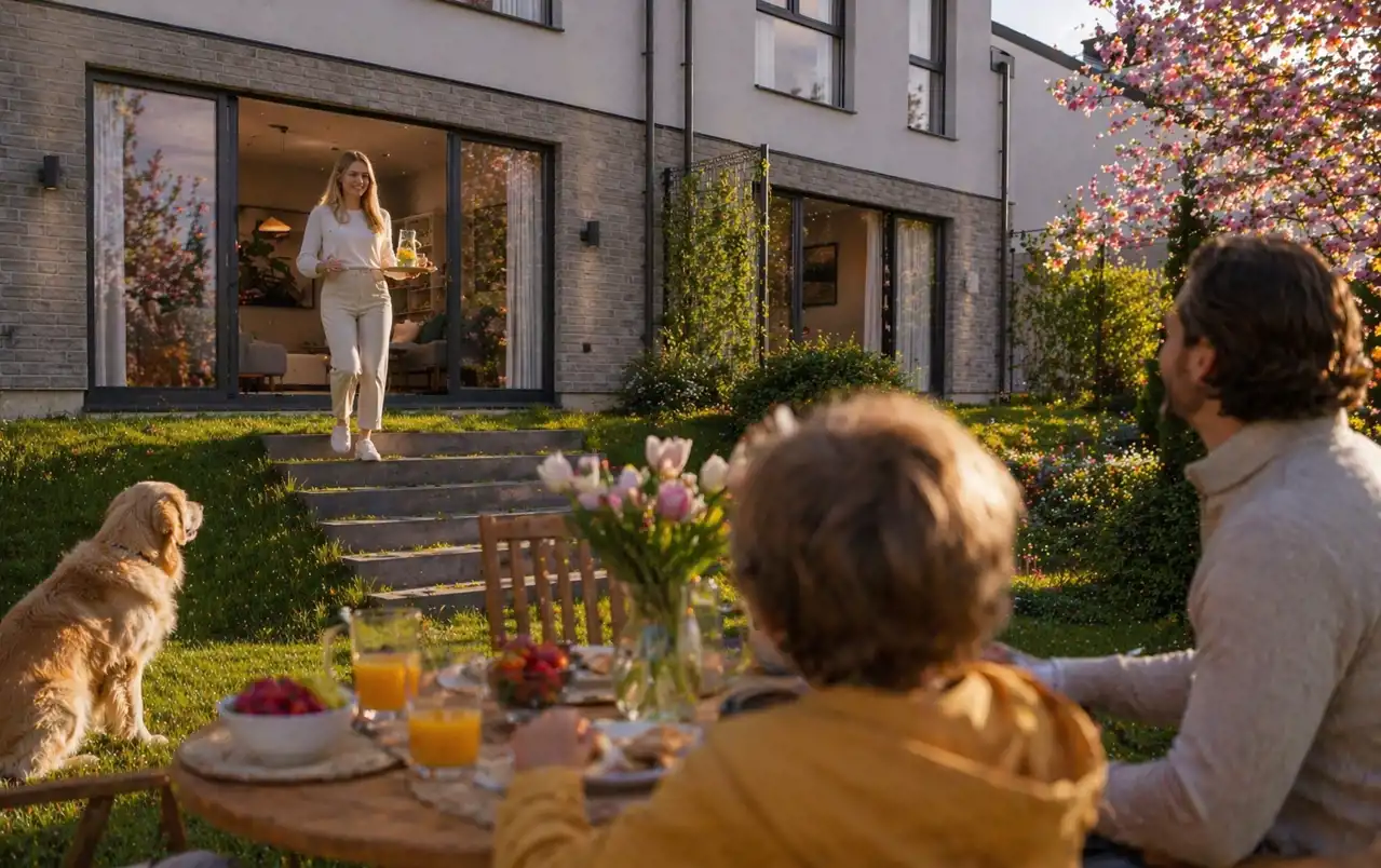 Na sprzedaż przestronny, 5-pokojowy dom w inwestycji Parkowe Łany, położonej w zielonym otoczeniu tuż pod Wrocławiem. Dom został zaprojektowany z myślą o rodzinach, które szukają większej przestrzeni, prywatnego ogrodu oraz wygody codziennego życia poza ścisłym centrum, ale z dobrym dojazdem do miasta. Do nieruchomości przynależy imponujący ogród o powierzchni 397,78 m², który daje realną przestrzeń do wypoczynku, zabawy, pracy w ogrodzie lub stworzenia własnej strefy relaksu.