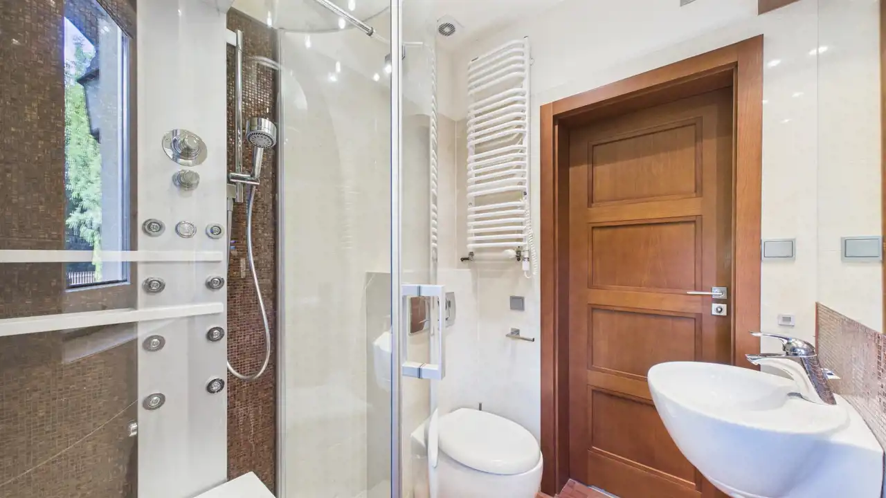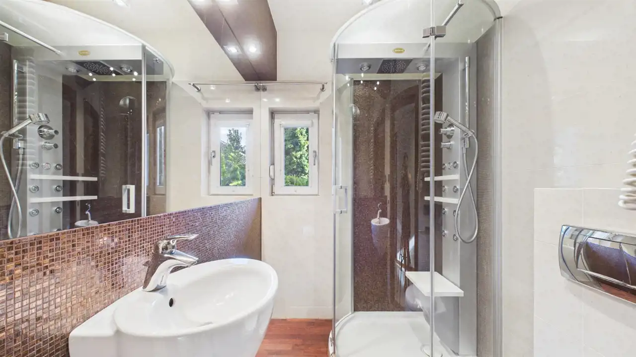 - Media Ogrzewanie: piec dwufunkcyjny; Woda: ciepła - piecyk gazowy; Kanalizacja: szambo; Prąd: jest; Gaz: tak - miejski