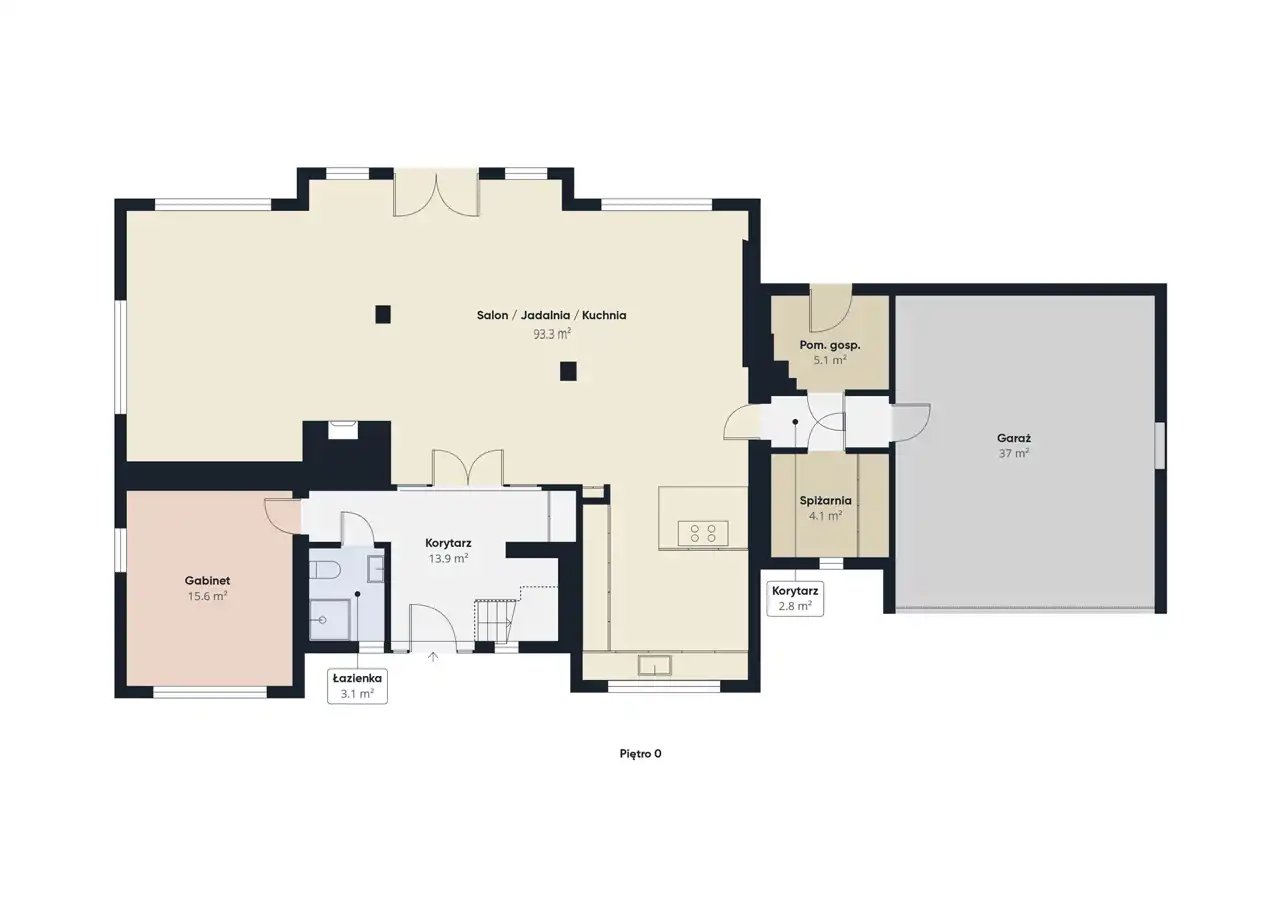 - pokój dzienny / jadalnia / kuchnia 93,3 m2