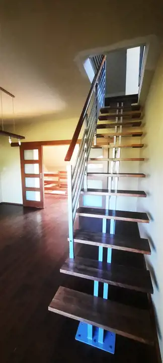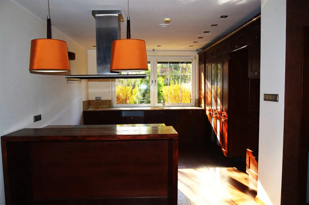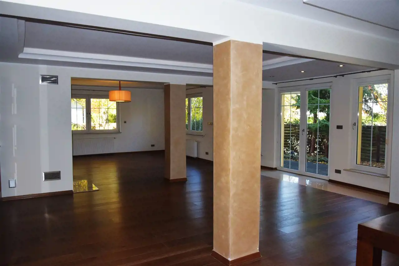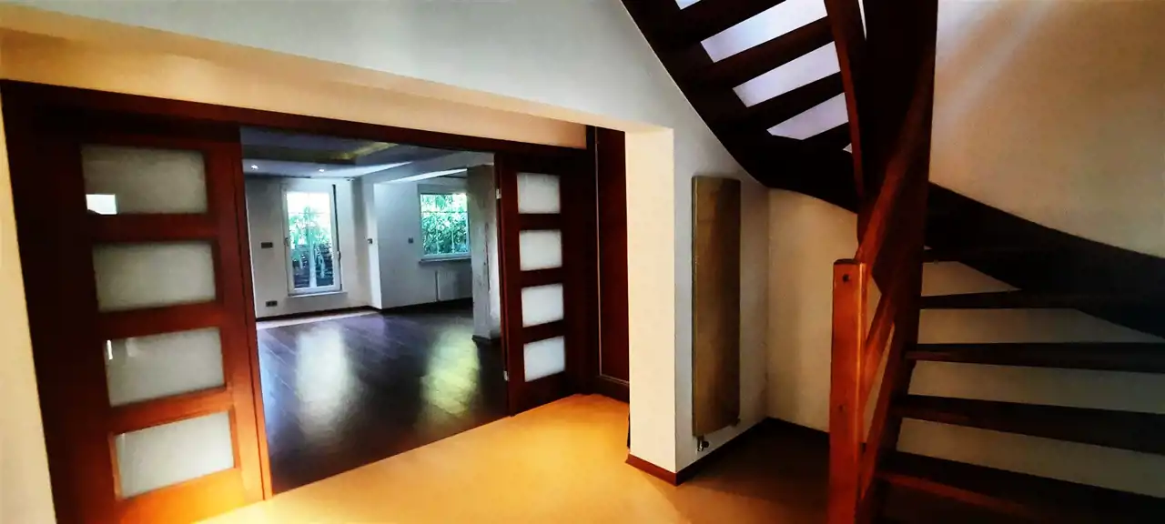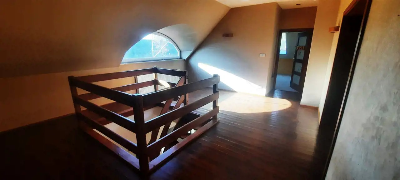 Pozostałe elementy wykończenia i udogodnienia: drewniane podłogi, drewniane schody, ceramika sanitarna - Villeroy&Boch, garderoba w każdej sypialni, odkurzacz centralny, zmiękczacz wody, sauna parowa, instalacja alarmowa, duży – dwustanowiskowy garaż i podjazd, nawadnianie ogrodu wraz z linią kroplującą, wieloletnie nasadzenia w ogrodzie.