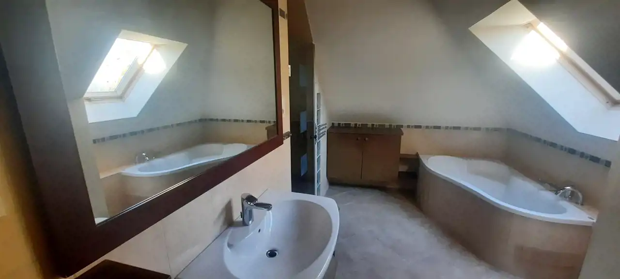 Gabinet o pow. ponad 24 m2 z antresolą. Duża łazienka z prysznicem i wanną.