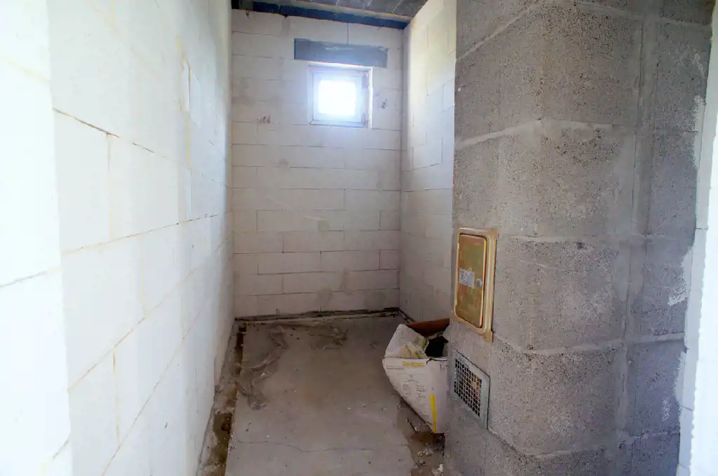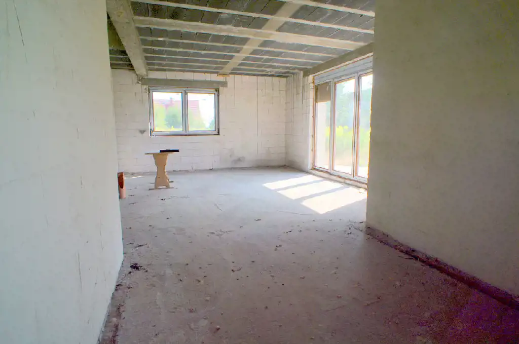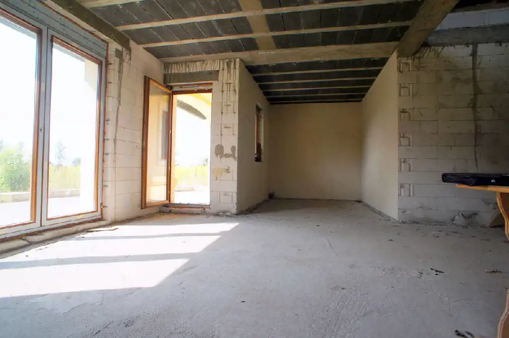 Na sprzedaż prezentuję Państwu dom wybudowany w 2010r. niewykończony - przez co nowy właściciel może użyć dowolnego rodzaju materiałów i wedle własnego pomysłu stworzyć idealny dom dla siebie, tym bardziej, że większość ścian można postawić w innym miejscu (tylko jednej ze ścian wewnątrz nie można zburzyć). Działka ma prostokątny, zbliżony do kwadratu kształt, mieści się na końcu nowego osiedla, jest to teren wydrenowany, suchy.