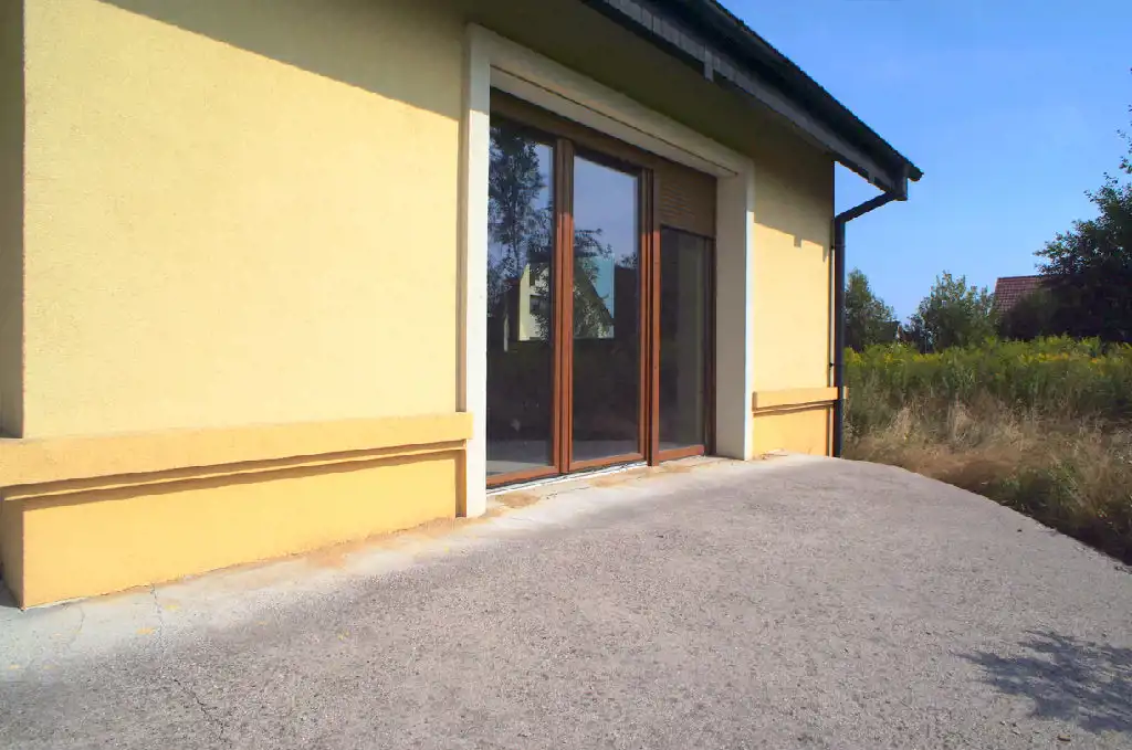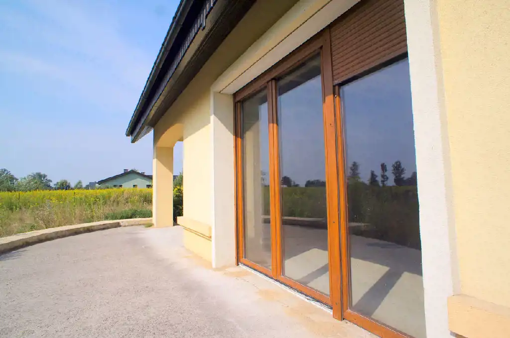 Kilka szczegółów na które warto zwrócić uwagę to: zintegrowane rolety, szyby antywłamaniowe, okna obrotowe uchylne, opaski wzdłuż okien, dodatkowo ocieplone ściany - 36cm +8cm styropianu, instalacja kominkowa, dachówka samoczyszcząca firmy Bogener Dachziegel, granitowe parapety, orientacja Północ-Południe.