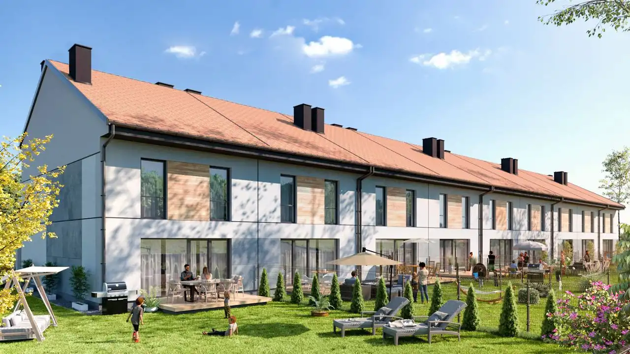 Każdy segment o powierzchni 113,72 lub 130,65 mkw posiada własny ogród, garaż i miejsce postojowe zewnętrzne.