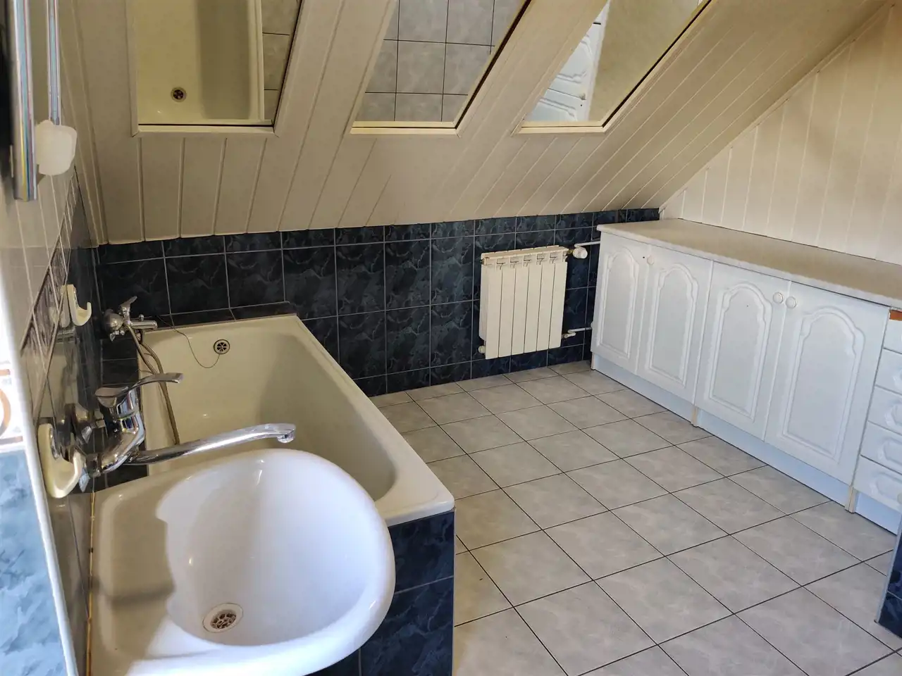Piętro: 3 sypialnie (11m2 | 14,5m2 | 17,5m2), łazienka (10m2; wanna + prysznic).