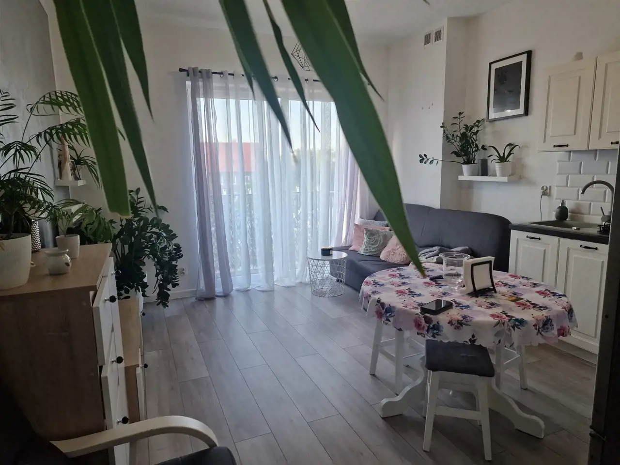 - salon połączony z kuchnią oraz wyjściem na balkon
