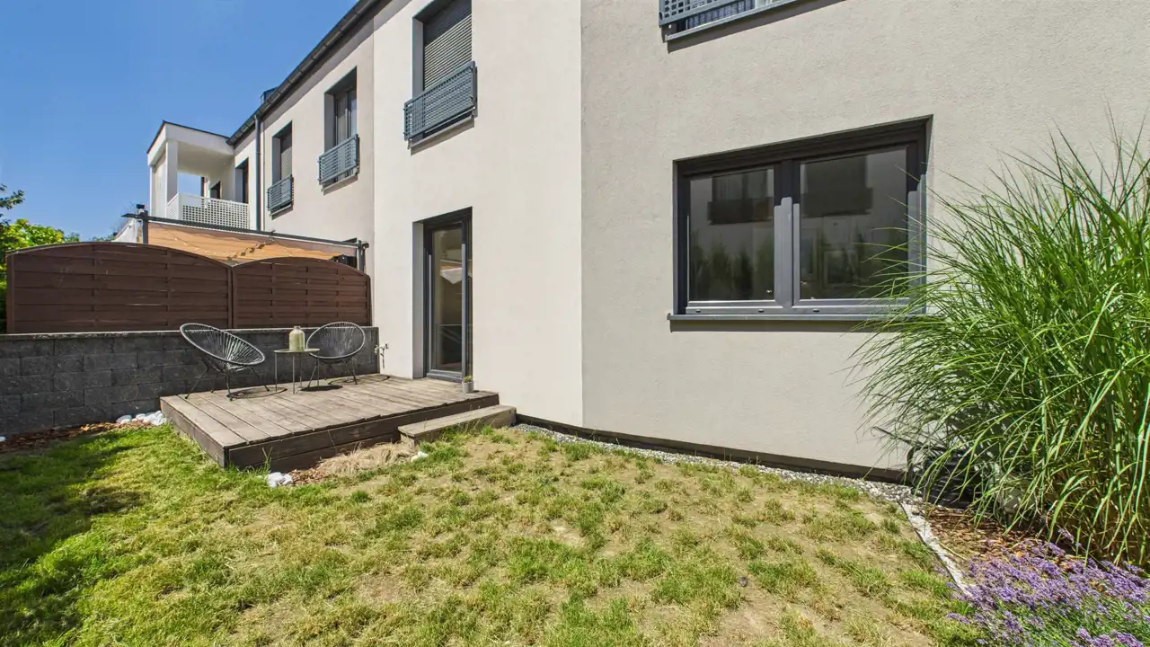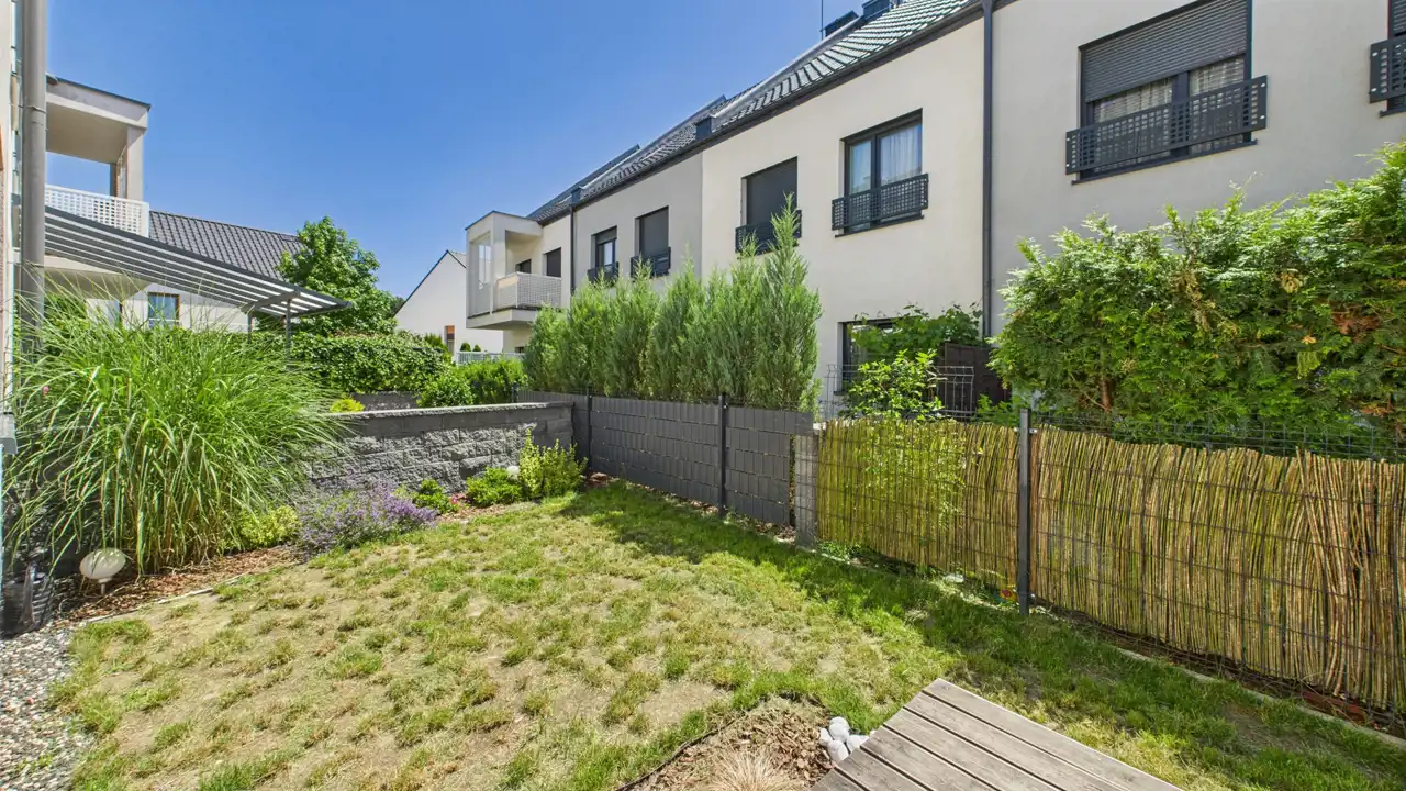 Większy ogród z tyłu (ok. 26 m²) + taras 7 m² – strefa odpoczynku, zabawy, spotkań z bliskimi