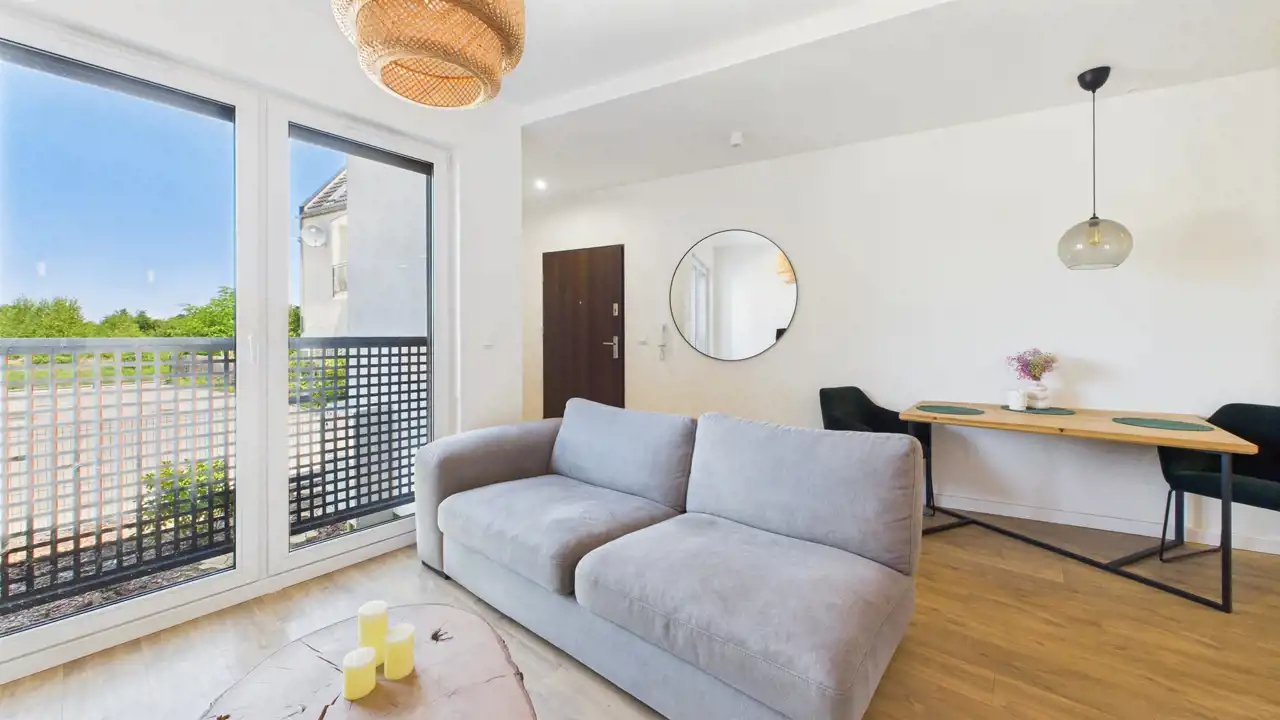 Jeśli szukasz miejsca, w którym od razu poczujesz się jak w domu — ta nieruchomość może być właśnie tym, czego potrzebujesz. W Kamieńcu Wrocławskim, zaledwie 4 kilometry od granic miasta, czeka na Ciebie w pełni umeblowane, 3-pokojowe mieszkanie o powierzchni 65,62 m².