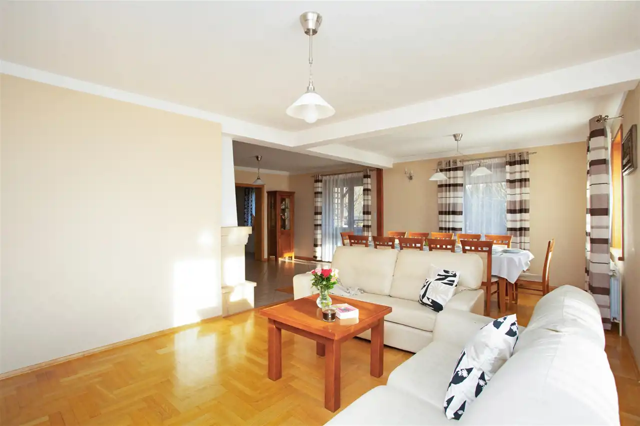 - przestronny, jasny salon z jadalnią, wyjściem na taras i do ogrodu