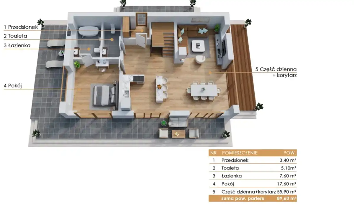 - Trzy wygodne sypialnie dające szeroki wachlarz aranżacji zgodnych z potrzebami mieszkańców