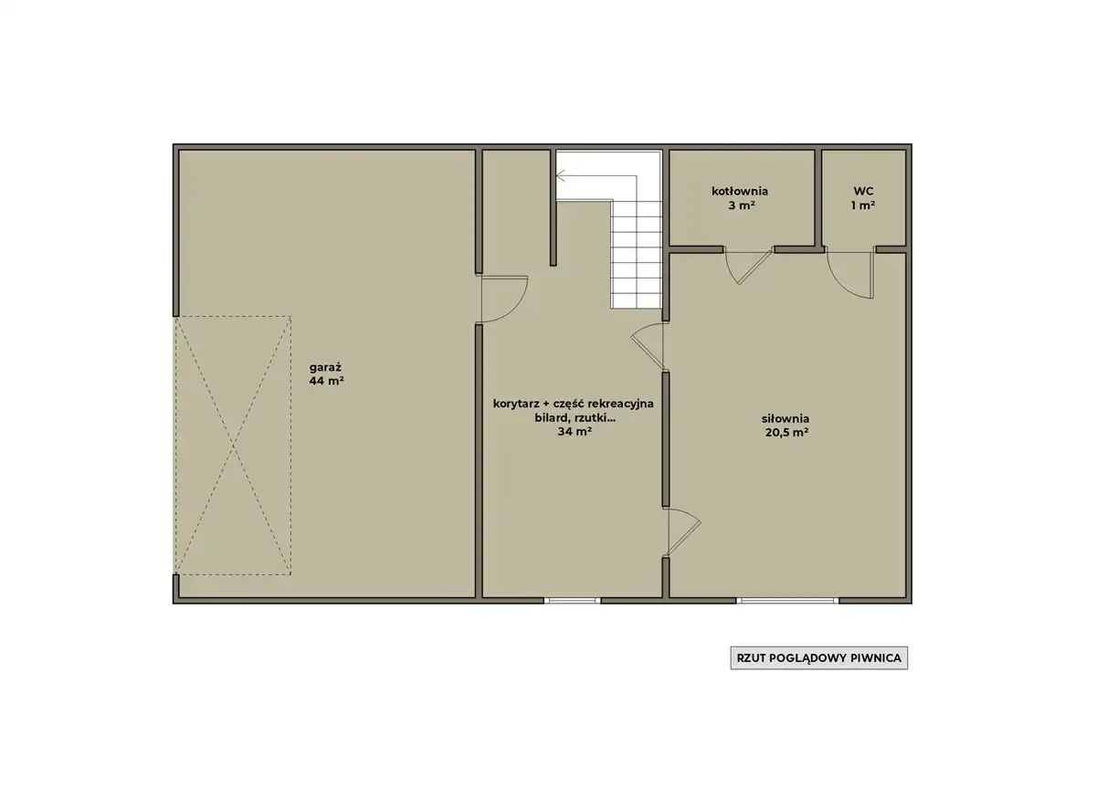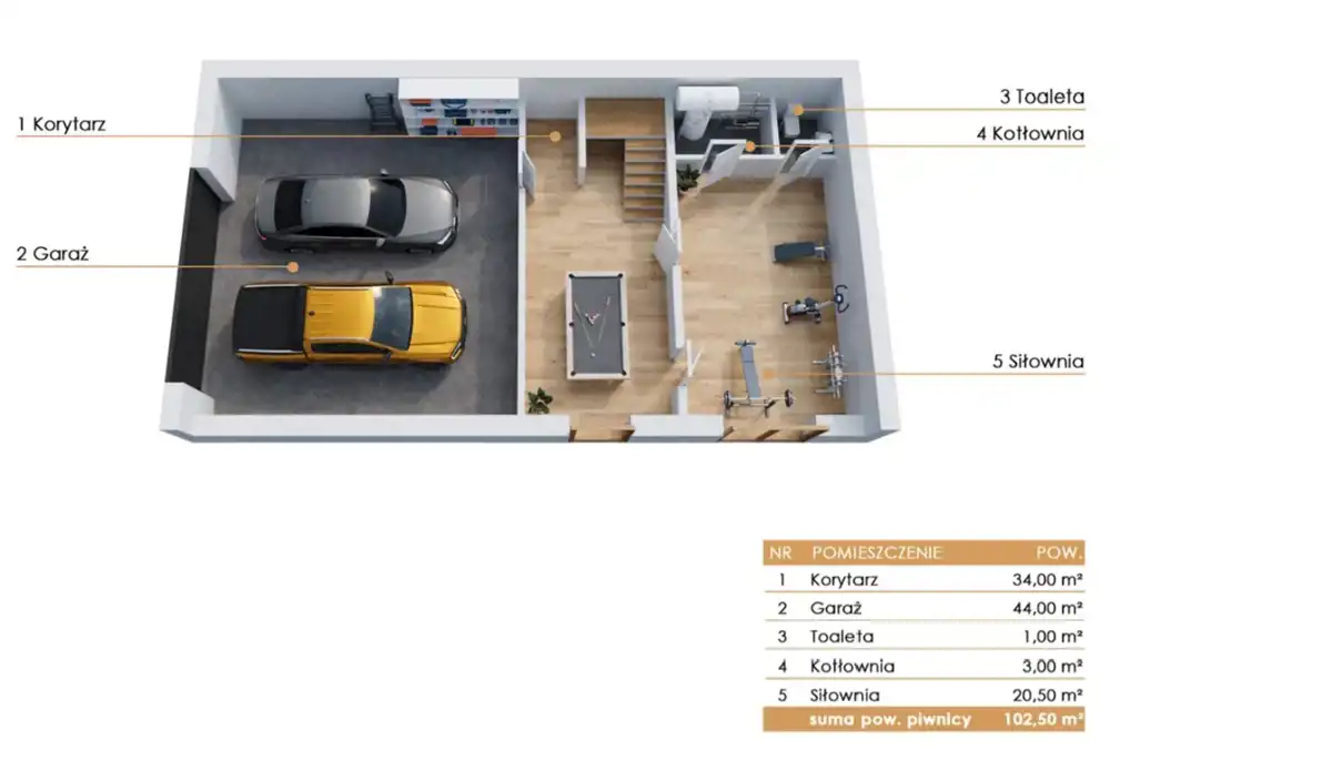 - Duża strefa rekreacyjna pozwalająca na urządzenie siłowni, pokoju gier czy kina domowego