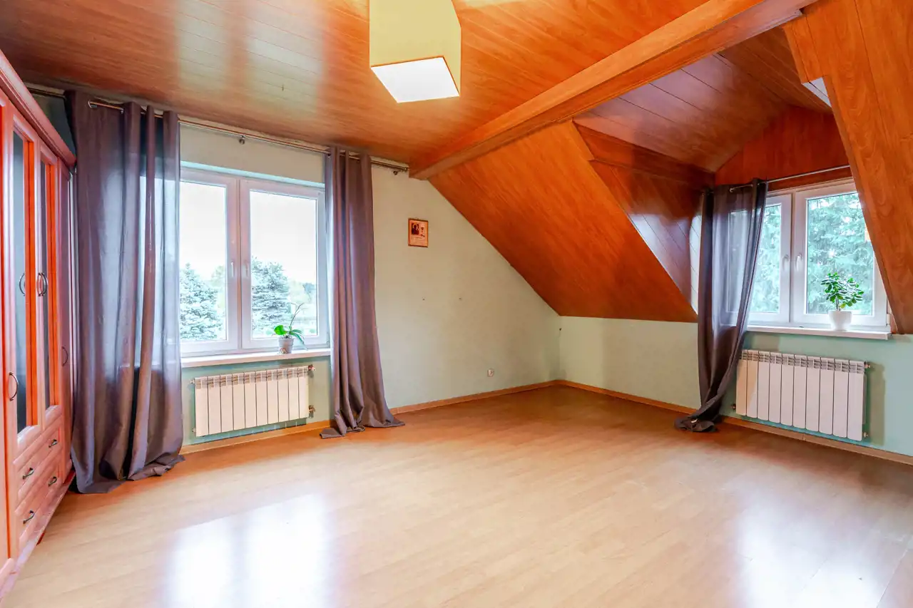 Dom wg. deklaracji podatku od nieruchomości posiada 92,5 m2 powierzchni użytkowej. Ze względu na skosy powierzchnia całkowita wynosi ponad 115 m2.