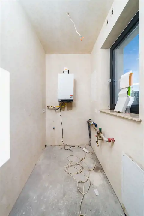 - bez drzwi wewnętrznych, podłóg, szpachlowania, malowania, białego montażu