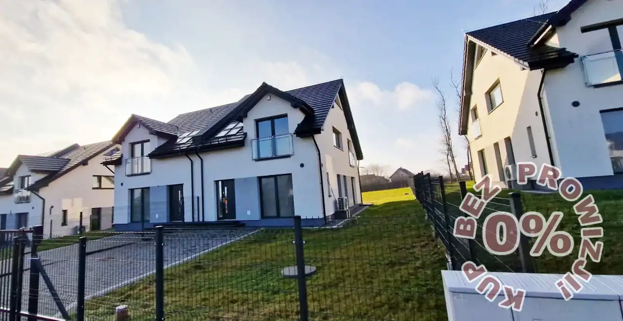 Nowoczesny dom, zlokalizowany na osiedlu 4 domów wolnostojących oraz 6 domów w zabudowie bliźniaczej, wybudowany z najwyższej klasy materiałów. Dojazd do osiedla drogą gminną asfaltową, a następnie drogą prywatną (współwłasność) utwardzoną. Dom znajduje się w spokojnej części miejscowości, wokół luźna zabudowa jednorodzinna oraz liczne tereny niezabudowane. W pobliżu pełna infrastruktura: przystanek MPK - 270m, szkoła - 600m, sklep - 800m, przedszkole - 1km. Nieruchomość posiada dużą działkę w pełni nasłonecznioną. Idealne miejsce dla osób ceniących sobie ciszę i spokój, z dala od miejskiego zgiełku.