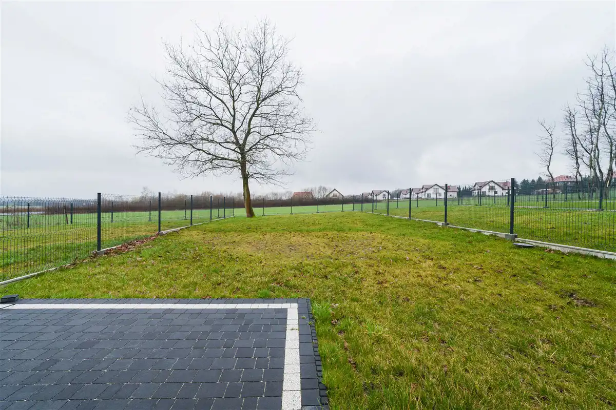 Rekuperacja i pompa ciepła w tym budynku to standard. Dom posadowiony na ustawnej prawie 6-arowej działce.