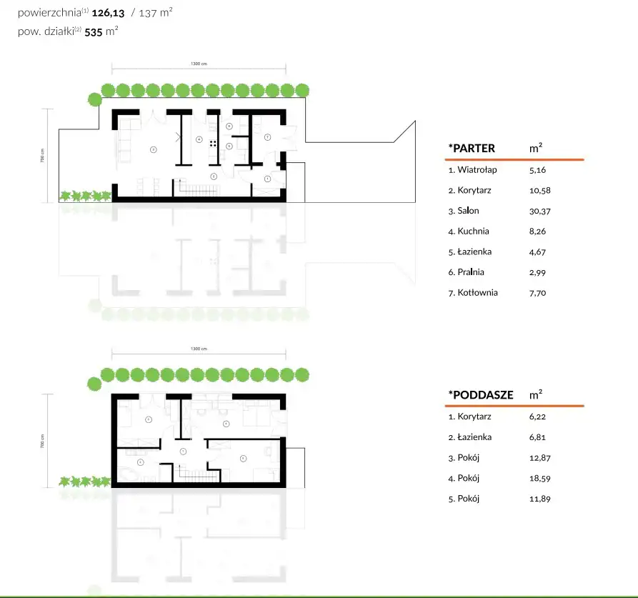 - duży doświetlony strych – 37 m² podłoga