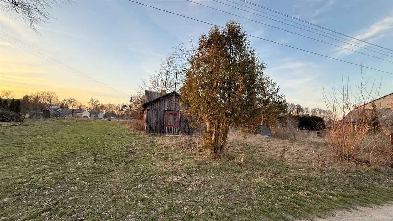 Działka posiada 255 m 2 od drogi 14m 2 szerokości a w wzdłuż 18,21, Na działce znajduje się dom drewniany z dostępem do wody i prądu.