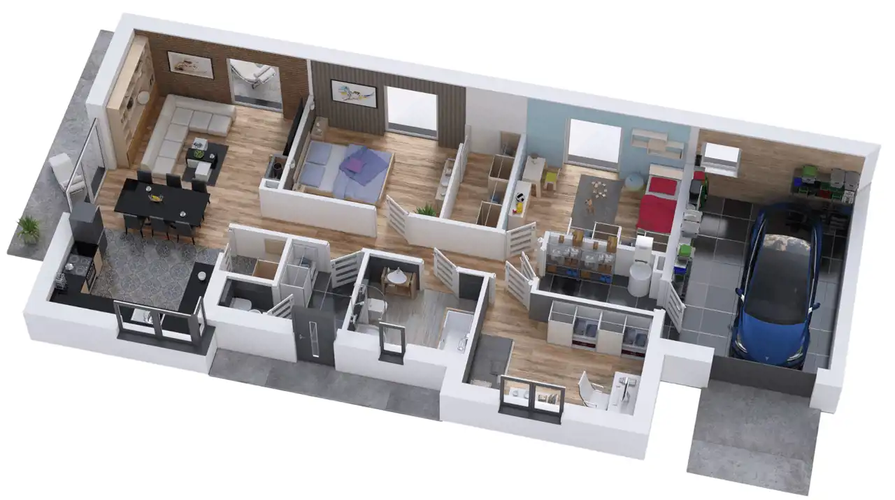 Na sprzedaż parterowy dom wolnostojący o powierzchni użytkowej 124,16 m², z garażem, zlokalizowany na kameralnym osiedlu w Płotach. Inwestycja obejmuje 10 budynków.