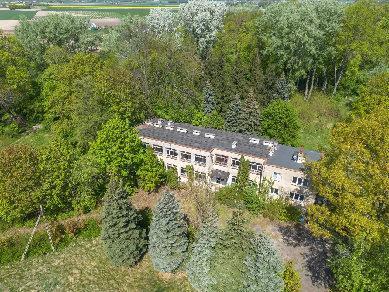 Na działce stoi budynek 630m po szkole do remontu bądź rozbiórki.