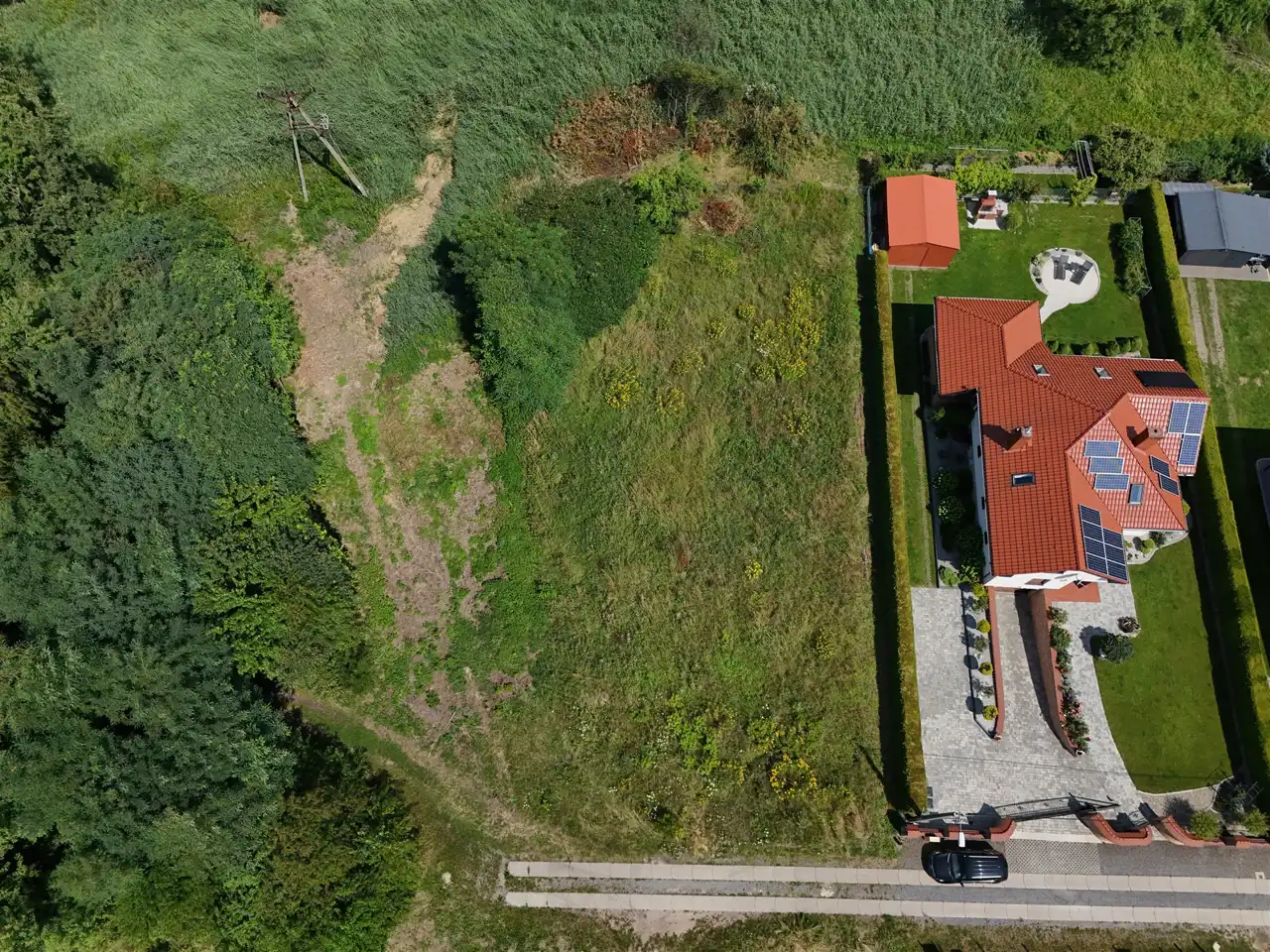 Działka budowlana 1104 m² – ostatnia linia zabudowy, cisza i zieleń