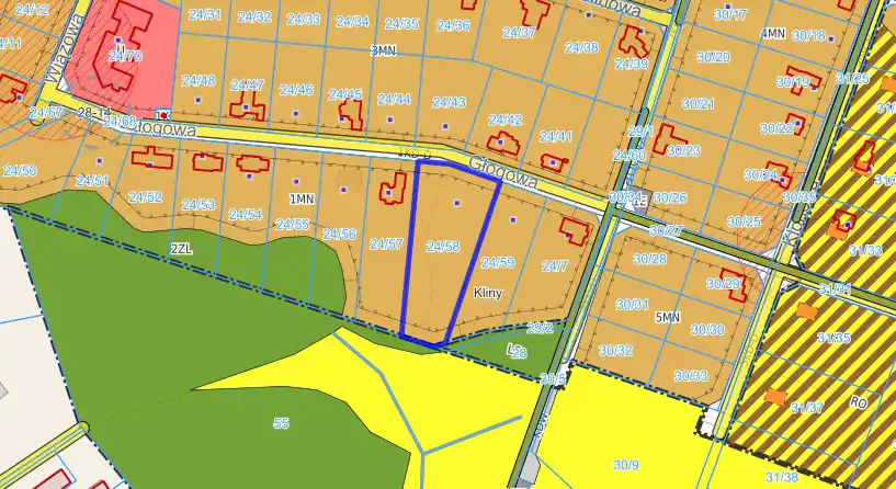 - Działka Zagospodarowana, częściowo zalesiona, trapez
