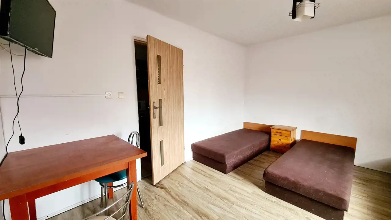 Piętro: układ bliźniaczy (trzy pokoje, aneks kuchenny, łazienka),