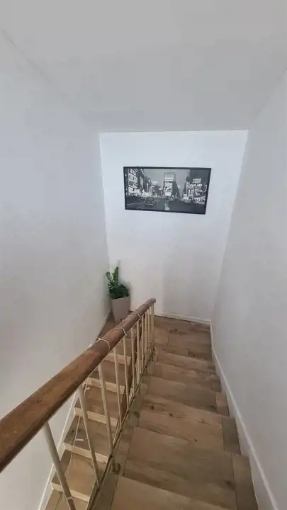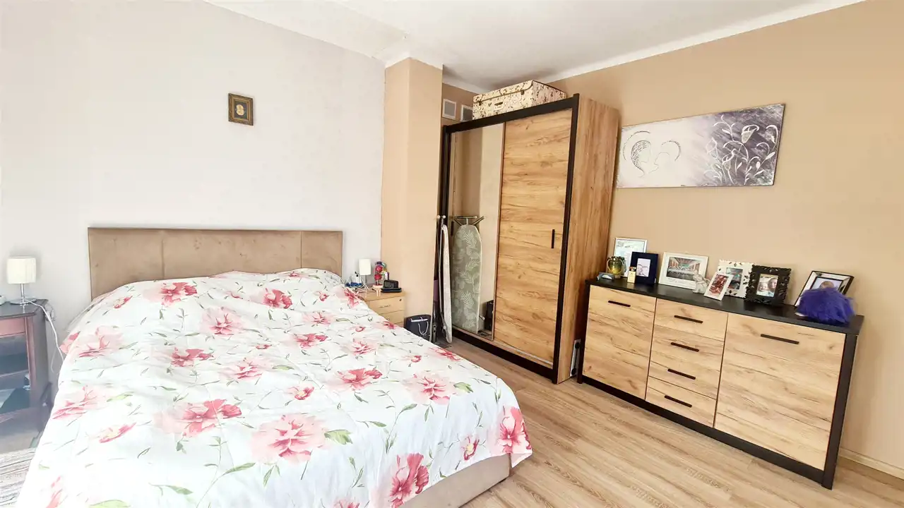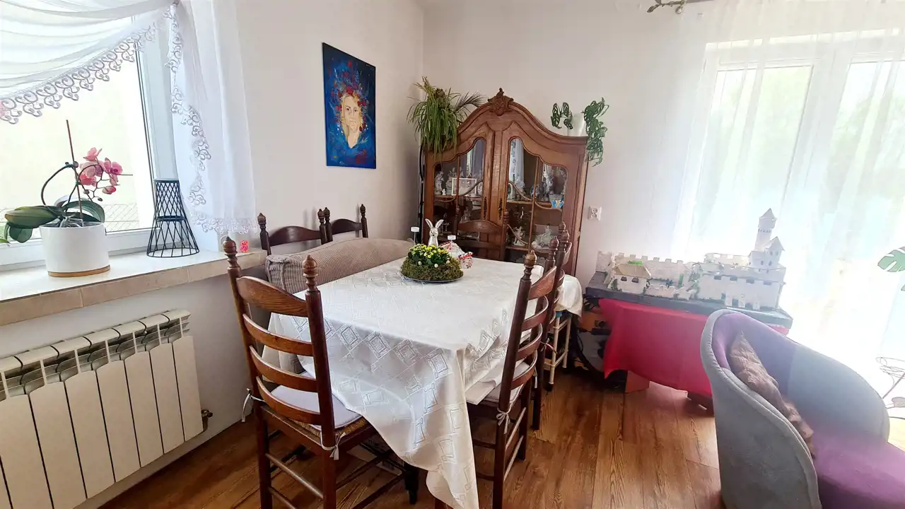 - Piętro – duża sypialnia z wyjściem na balkon, mniejsza sypialnia, łazienka z wanną, korytarz z pojemną szafą.