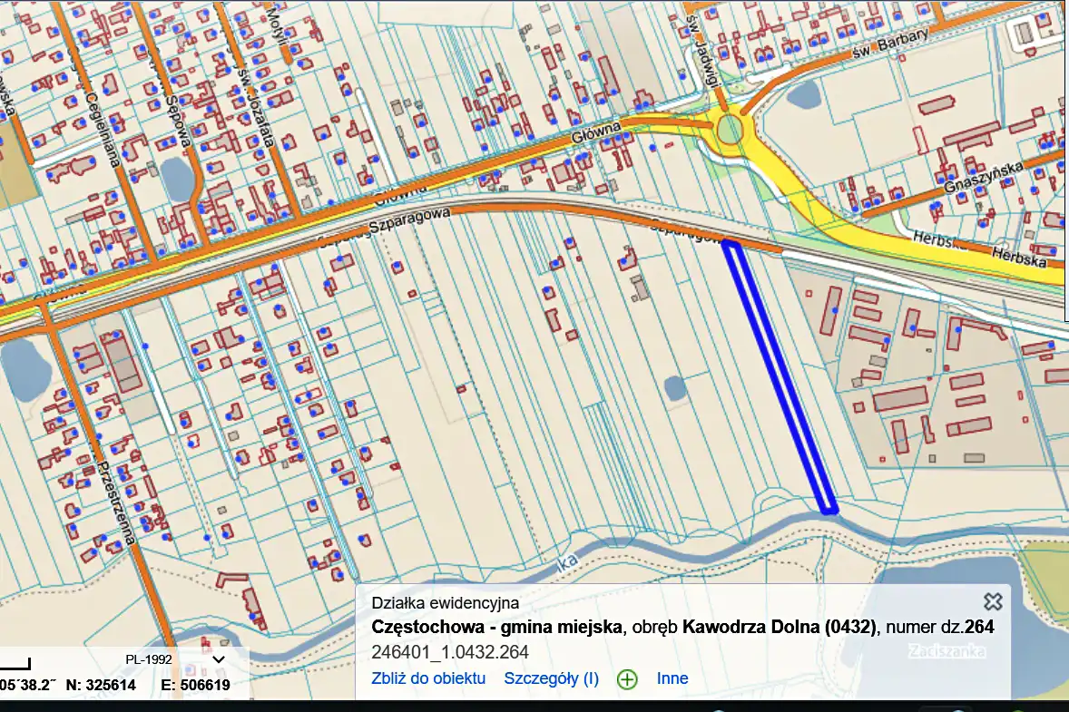 Na sprzedaż atrakcyjna działka inwestycyjna z wydanymi warunkami zabudowy, zlokalizowana w Częstochowie, przy ul. Szparagowej, w dzielnicy Kawodrza Dolna.