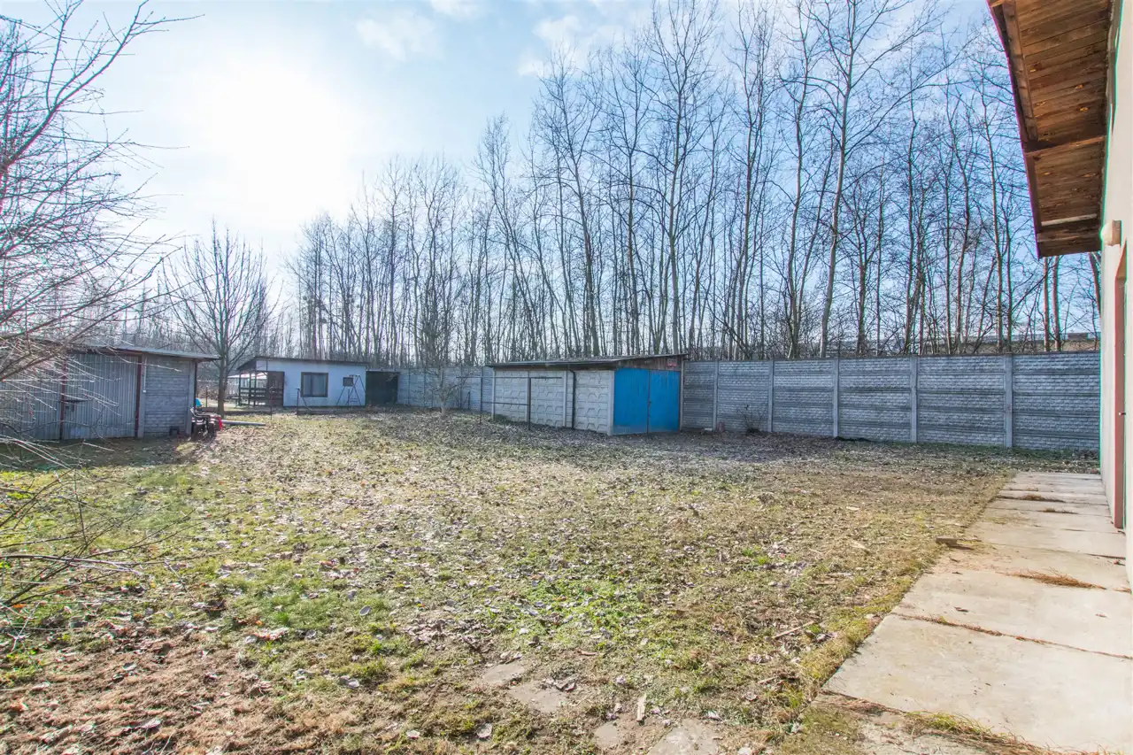 - w części środkowej działki dwa garaże wolnostojące z płyt betonowych;