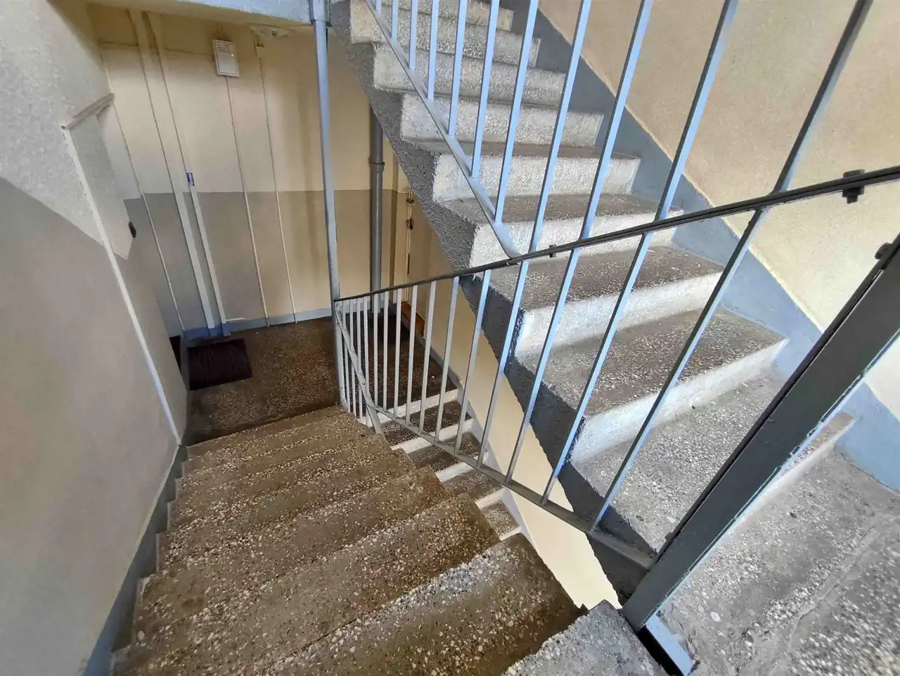 Zadbana klatka schodowa z domofonem