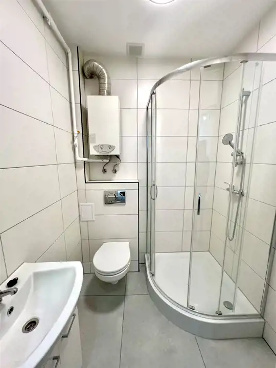 - Media Ogrzewanie: C.O. miejskie; Woda: ciepła - piecyk gazowy; Gaz: jest