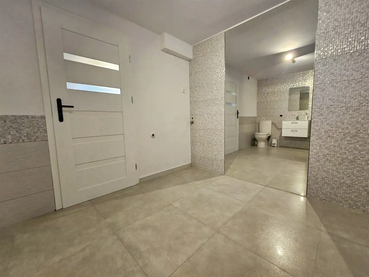 Przyziemie: wspomniany apartament mogący przyjąć komfortowo 6 osób o powierzchni około 80 m2 składający się dużego salonu z kuchnią oraz jadalnią 40 m2, dwóch sypialni, dużej łazienki oraz holu, kotłownia z niezależnym wejściem