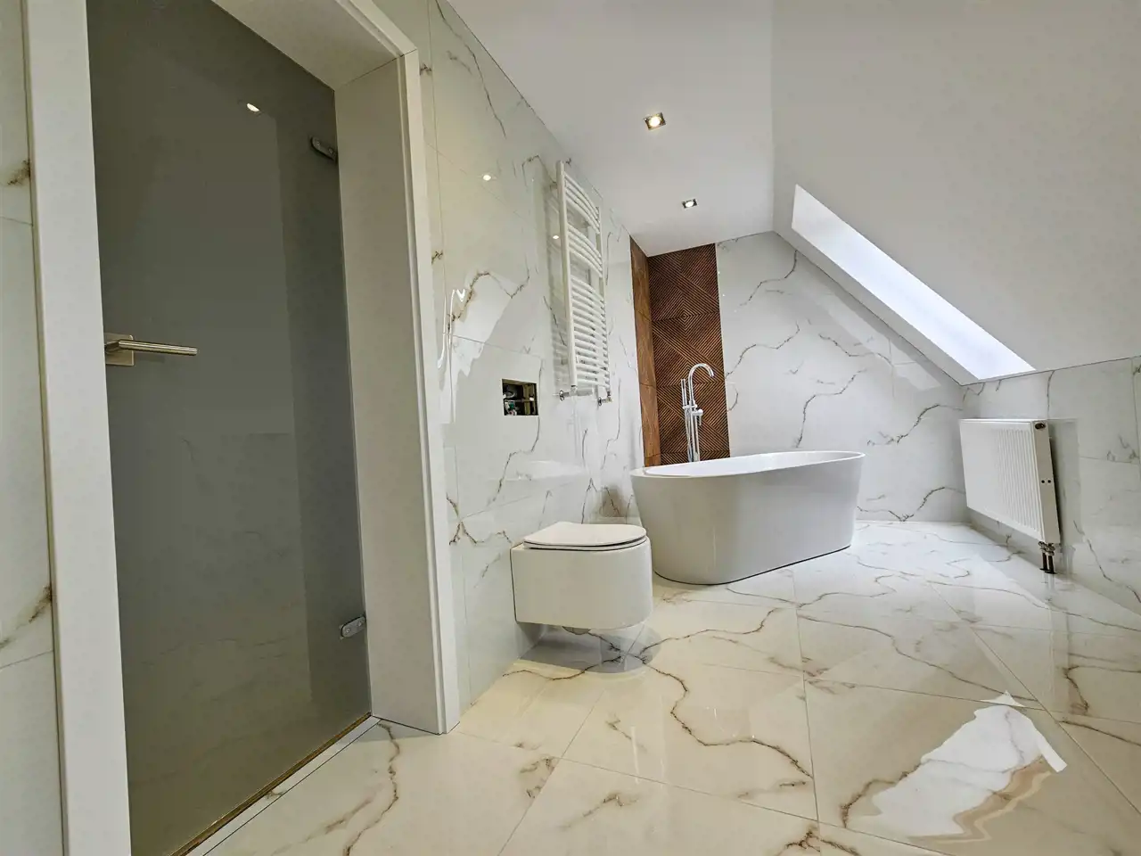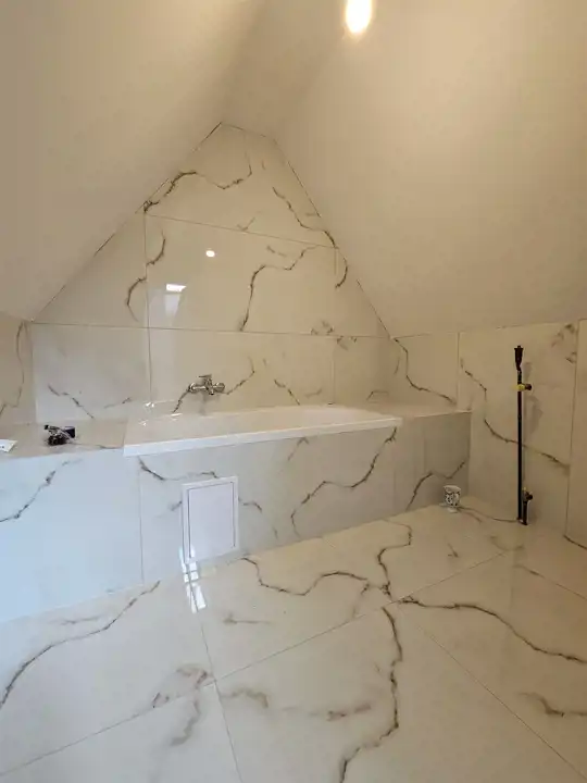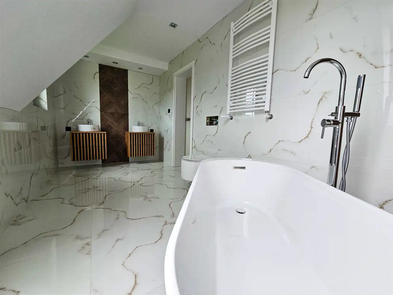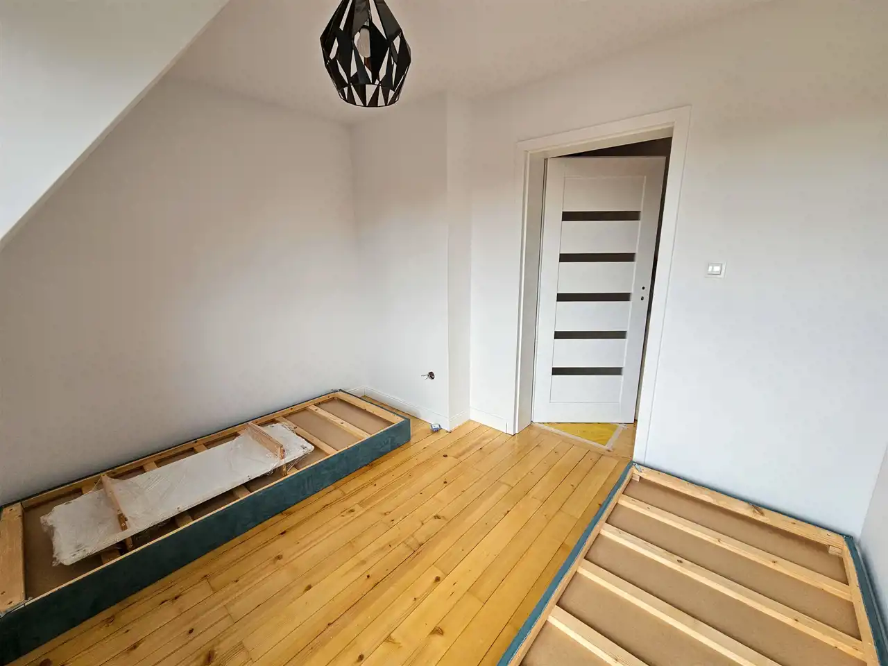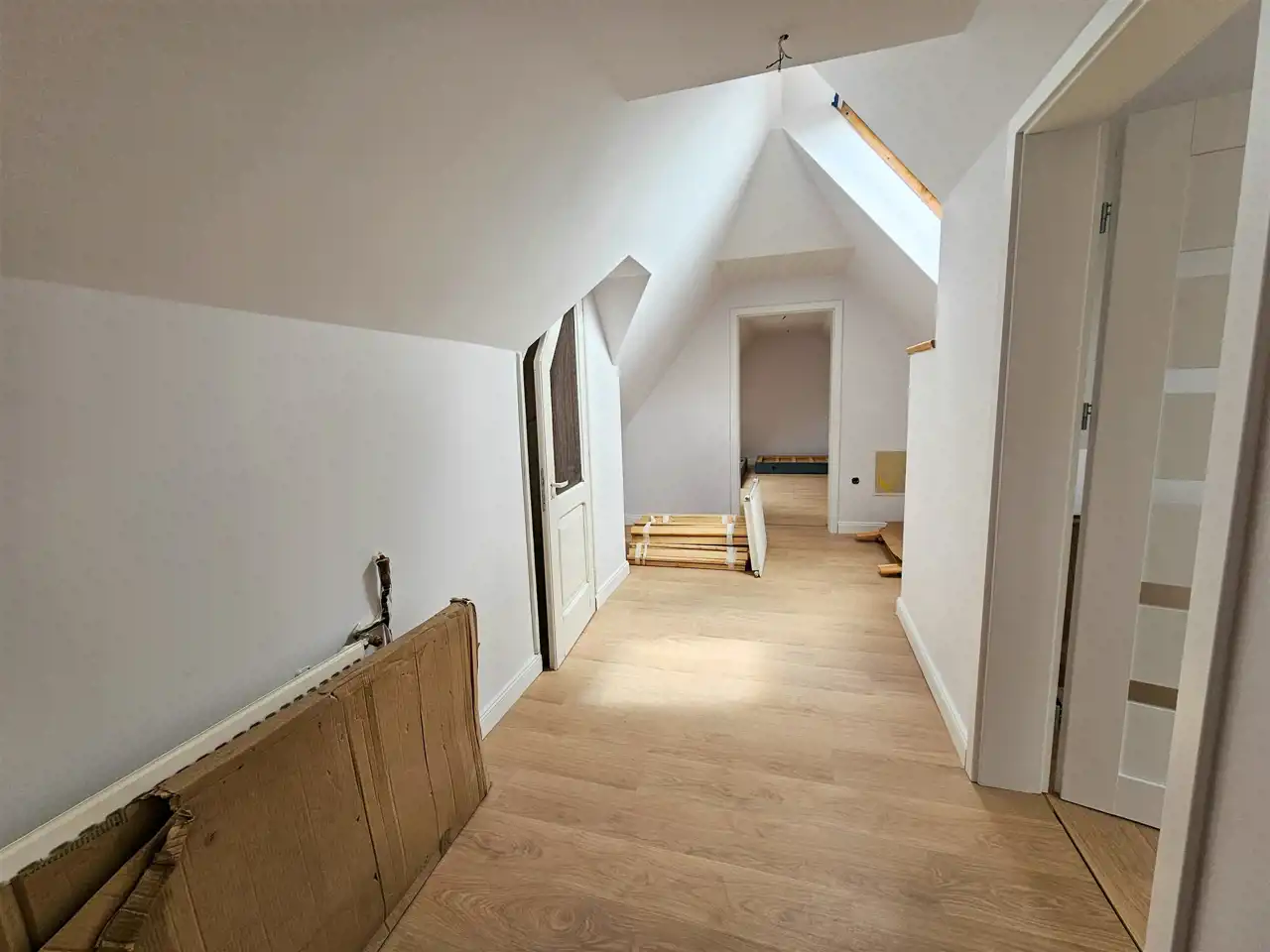 Poddasze użytkowe znajdują się tam dwa pokoje w skosach , łazienka